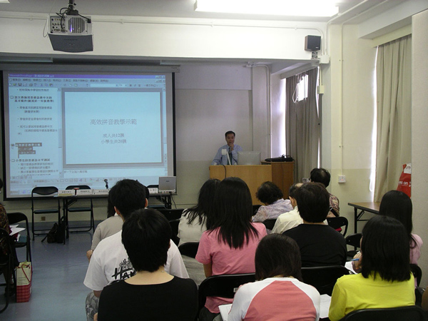 bet36365网站傅爱兰教授、张明远教授在香港教师中心举办高效拼音讲座。